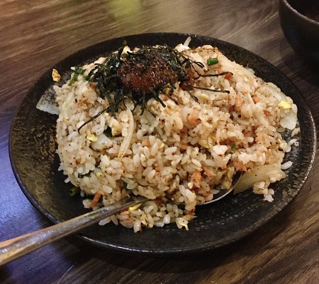 - 老串角居酒屋必點之一的 招牌鮭魚炒飯 $170