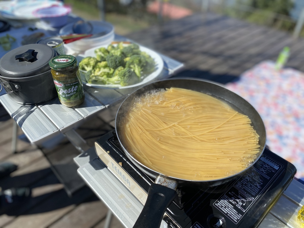- 到的中午十一點時, 我們趕快來煮安排好的最後一餐, 青醬義大利麵
