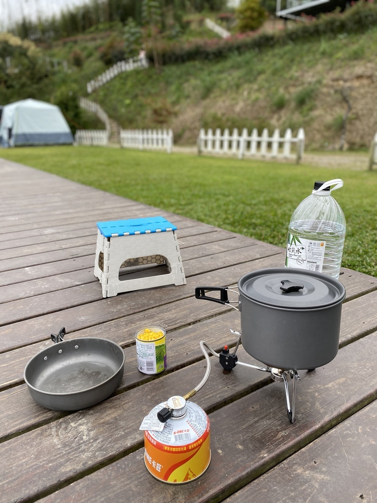 - 我們除了一般卡式爐外, 還好還有準備一個小的攜帶型, 可以備菜的同時煮湯的部分