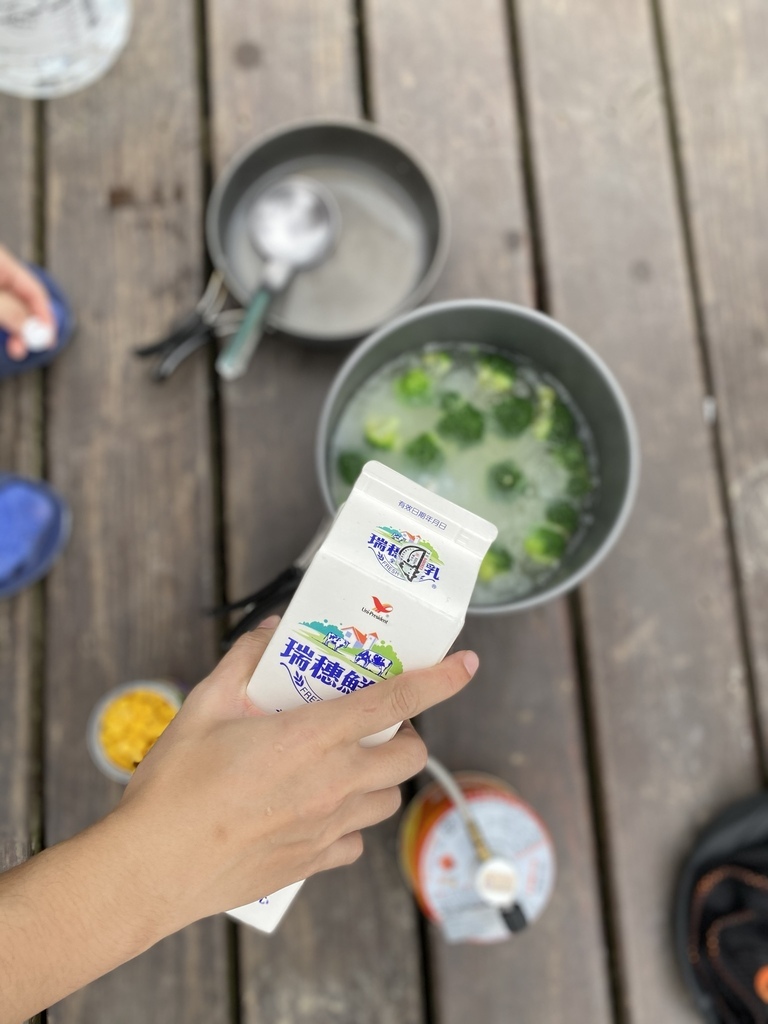 - 原本打算做玉米濃湯, 結果奶油跟洋蔥忘在家裡沒帶上...