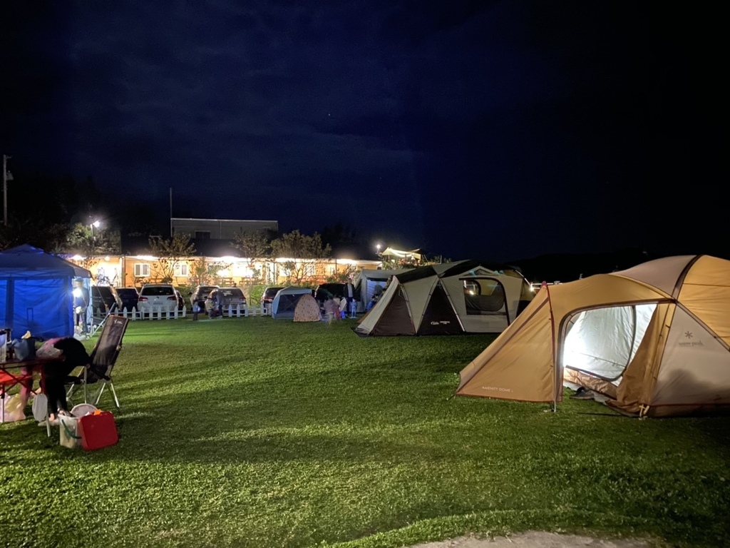 - 上一張照片看似還空蕩蕩的營區, 到了晚上已經安頓好好幾個家庭與好幾輛車, 非常歡樂