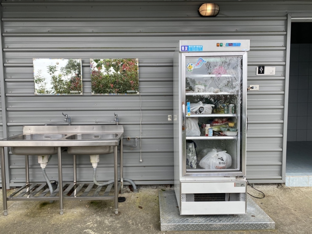 - 營區旁流理台, 造型簡單, 一區五帳共用兩個檯面